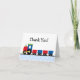 Un adorable train rouge et bleu avec des pois est présenté sur ce mignon carte de remerciements.