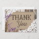 Le bois rustique avec la dentelle et la lavande blanches fleurit le carte de remerciements.