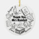 Célébrez et honorez un enseignant spécial avec ce charmant ornement de style doodle. Avec des illustrations ludiques sur le thème de l'école comme des livres, des crayons, un globe terrestre, et plus encore, cet ornement est la façon parfaite de montrer l'appréciation pour le travail acharné et le dévouement des enseignants. Personnalisez-le avec le nom de votre professeur pour créer un souvenir réfléchi qu’ils chériront pendant des années. Idéal pour les cadeaux de Noël, les remerciements de fin d'année, ou la semaine d'appréciation des enseignants. Ajoutez le nom de votre enfant au dos de l'ornement.