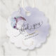 MERCI ÉTIQUETTE CADEAU | Lune croissante améthyste époustouflante fleurs violettes poussiéreuses pâles et fleurs violettes avec accents de feuillage d'eucalyptus pâle sauge sur fond lavis aquarelle lilas pâle et or - Conception par theBarefootBride ™.