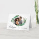 Merci à vos invités mariages avec un carte photo unique avec un cadre découpé ovale entouré de luxuriants feuilles de bananes tropicales. Un texte de remerciement moderne est écrit en bas à gauche de la carte et un modèle de texte pour les noms de la mariée et du marié est en bas à droite de la carte. Un exemple de message de remerciement a été inclus à l'intérieur de la carte que vous pouvez modifier avec vos propres mots, ou supprimer le texte si vous souhaitez écrire vos notes de remerciement. Remplacez l'exemple de photo par votre mariage, lune de miel ou autre photo de votre choix.