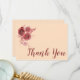Une charmante carte de remerciement, cet article présente un beau graphique de fleurs dans le coin supérieur gauche sur un fond pêche. En bas à droite, « Merci » est écrit de manière magnifique en texte cursif bordeaux. Personnalisez le vôtre dès aujourd'hui !