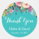 Stickers Merci Fleur Rose Fleur De Mariage Faveur. Arrière - plan turquoise Turquoise Aqua. Customisez avec vos Noms et Date.