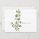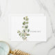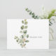 Funérailles, deuil carte de remerciements. Nom de famille et merci sur le dos. Typographie. Fond blanc. Foliage. Simple. Eucalyptus. Années de vie.