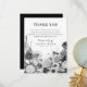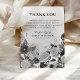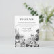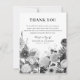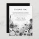 Carte de remerciements funéraire personnalisée à envoyer à des amis et à la famille qui vous ont montré l'amour et la bonté pendant votre deuil. Doté d'un arrière - plan blanc classique et d'un étalage de fleurs et de feuillage noir et blanc. Tout le texte est facile à customiser en utilisant le modèle fourni.