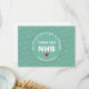 Carte HÉROS simple et moderne de MERCI aqua NHS HEALTHCARE. Le texte dit POUR TOUT CE QUE VOUS FAITES POUR NOUS FAIRE TRAVERSER, MERCI HÉROS DE SOINS DE SANTÉ NHS. Tout le texte est PERSONNALISABLE et vous pouvez personnaliser le message à l'envers pour envoyer à vos héros de santé. Ce serait une excellente façon de dire Merci aux infirmières, aux médecins, aux travailleurs médicaux et au personnel auxiliaire pour la vie qu'ils servent et sauvent. Disponible dans d'autres couleurs de gommage.