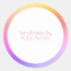 Un autocollant rond gai avec une bordure en arc-en-ciel et un texte "fait à la main" personnalisable ajoute une finition brillante et amicale aux paquets, mailers et enveloppes pour les petites boutiques et les commandes Etsy. Le centre blanc propre permet de lire les marques, tandis que le bord coloré attire l'attention et crée un moment de déballage heureux pour l'appréciation du client. Le texte peut être entièrement personnalisé pour inclure un nom de magasin ou une ligne de contact.