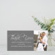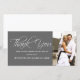 Magnifique Carte photo de Merci Mariage avec une belle police de caractères blanche pour les mots "Merci" sur un arrière - plan de couleur solide de votre choix. Montré ici avec une couleur arrière - plan grise avec un design simple mais élégant pour le texte et la photo. Une façon parfaite d'envoyer un remerciement sincère à vos invités mariages et de fournir à chacun une photo mariage des nouveaux mariés. Design par Elke Clarke ©2011. Choisissez votre couleur arrière - plan ajoutez vos noms de mariée et de mariée, votre message et votre date de mariage. Échangez cet exemple de photo pour vous-même. Choisissez "customisez-le" pour plus de flexibilité pour positionner et dimensionner votre photo et déplacer le texte pour mieux convenir à la mise en page. Félicitations Newly Weds !