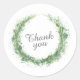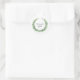 Aquarelle abstraite moderne sauge bleu gris vert vert vert vert couronnes vous remercier d'être venu ou favoriser les autocollants de mariage. Partie de la verdure abstraite aquarelle wreath art mariage stationnaire set. © Original watercolor art and design par Sarah Trett. www.sarahtrett.com pour www.mylittleedenweddings.com