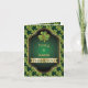 Carte photo en or, trèfle vert irlandais et cadre mariage avec votre photo à l'intérieur avec un trèfle vert avec contour or, un cadre vert dégradé avec contour or, une bannière or et un motif avec shamrocks. Moderne, élégant et élégant, ce design modèle est entièrement personnalisable et conviendra parfaitement aux mariages irlandais de Saint Patrick's ou de St. Patrick's Day.