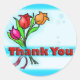 Cet autocollant Happy fun et coloré est un autocollant parfait pour vos souhaits de "Merci". Dans ce dessin amusant sont lumineux bouquet de fleurs en rose rouge et orange sur un arrière - plan bleu vif avec étoiles et "MERCI" salut sur le devant.