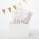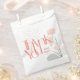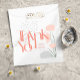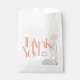 Ces sacs de faveur de style moderne comportent le mot "merci", en corail avec un design abstrait dans les tons de corail et de gris. Personnalisez simplement avec les prénoms du couple mariage.