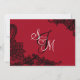 La dentelle noire élégante au-dessus de l'arrière - plan rouge et le blanc lacent au-dessus de l'arrière - plan noir avec le carte de remerciements moderne de goth de contraste de monogramme noir et blanc et de blanc.