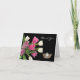 Carte de note avec un arrière - plan noir et un joli bouquet de tulipes roses avec une photo d'une couronne de reine des pageants. Customisez cette carte de note et ajoutez votre propre message spécial à l'intérieur ou achetez vierge tel quel. Image stock