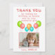 Merci photo Anniversaire de enfant de ballons. Merci ballon carte d'anniversaire pour la fête d'anniversaire des enfants. Ce design est fourni avec des ballons aux couleurs rouge, bleu, rose et vert. Personnalisez la carte avec le nom de votre enfant, message de remerciement et photo.