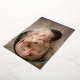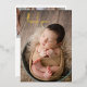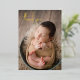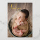 Carte simple de nouveau-né avec "merci" dans un script moderne avec le nom du bébé et la date de naissance. Tout le texte sur le devant est en papier or. Le dos a un collage photo avec trois photos carrés avec votre message personnel. Cette faire-part de naissance élégante est une excellente façon d'annoncer la naissance de votre nouveau bébé garçon ou petite fille.
