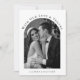 Voici notre Carte de remerciements élégant Mariage photo noir et blanc. Ce design sophistiqué et intemporel saisit parfaitement l'essence de votre journée spéciale tout en exprimant votre gratitude à vos amis et à vos proches. Réalisée avec soin dans le détail à l'aide d'un exemple de photo d'espace réservé en noir et blanc sophistiqué, vos cartes de remerciement feront certainement une impression durable. Au premier plan de ce design se trouve une palette de couleurs noir et blanc classique, créant un contraste saisissant qui respire l'élégance. La combinaison de ces tons intemporels apporte une touche de sophistication à chaque aspect de la carte. Utilisez une photo préférée en noir et blanc de votre jour de mariage pour obtenir ce look intemporel. En complément de la photo, la carte est dotée d'une typographie élégante qui exprime votre appréciation sincère. Les polices soigneusement choisies apportent un sens de raffinement, tandis que le placement réfléchi du texte assure clarté et lisibilité. Les mots "Merci" sont exposés avec élégance, servant d'expression gracieuse de gratitude. Que vous exprimiez grâce à votre famille, vos amis ou des vendeurs qui ont rendu votre journée spéciale, notre Elegant Black and White Photo Mariage Carte de remerciements est le choix parfait. Il transmet non seulement votre appréciation sincère, mais sert aussi de beau souvenir de votre jour de mariage.