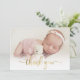 Simple Moderne Élégante Calligraphie Or Script Photo Nouveau-né Baby Merci Carte Faire-part de naissance. Dispose d'un beau texte "merci" dans un script de police de caractères de calligraphie swash tail manuscrit en feuille d'or FAUX. Message personnel préfabriqué à l'arrière. Idéal pour bébé fille ou bébé garçon. Facile à personnaliser avec votre photo bébé et les détails.