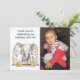 Célébrez l’anniversaire de votre petite fille sur le thème du safari avec cette carte de remerciements personnalisée pour photo pour enfants. Le design comprend un petit éléphant sucré, une verdure aquarelle, des fleurs bleues et oranges, et un espace pour présenter la photo la plus jolie de votre enfant. Que vous fêtiez un 1er, un 2e ou un 3e anniversaire, cette carte est un moyen utile de témoigner de votre reconnaissance à vos amis et à votre famille. Associez-le à des sacs de faveur ou à un décor animal de jungle assortis pour compléter votre thème d'anniversaire safari jungle avec un look cohésif et charmant!