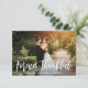 Une belle image des jeunes mariés avec un texte tendance. L'image des mariés, la couleur de fond et le texte peuvent être personnalisés. Ajoutez un message de remerciement personnel et vous pouvez télécharger votre propre photo.