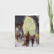 Illustration vintage de Noël représentant un père emmenant ses enfants faire des achats de Noël la veille de Noël. Un grand sapin de Noël blanc décoré est à l'arrière-plan.