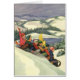 Illustration vintage Noël représentant des enfants faisant de la luge dans une colline enneigée le jour de Noël.