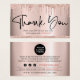 Merci pour votre achat carte de réduction client avec or rose et parties scintillant goutte à goutte. Customisez pleinement le texte et les icônes des médias sociaux pour votre marque. Merci à vos clients et clients d'acheter avec vous en incluant ceci avec vos paquets et produits pour dire Merci et de leur donner un code de coupon pour un achat futur pour encourager les affaires répétitives.