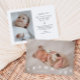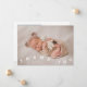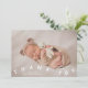 Carte de faire-part de naissance Whimsical avec texte typographique qui dit "merci" en bas avec deux photos sur la police. Vous pouvez ajouter une 3ème image au dos avec les statistiques de naissance et le message.