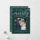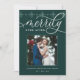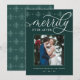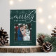 Les cartes photos de vacances élégants pour les jeunes mariés présentent une photo de mariage carré préférée sur un riche arrière - plan vert chasseur, avec "Merrily Ever After" en script de calligraphie blanche. Personnalisez avec vos noms ou salutation personnalisée en dessous. Une bordure tonale de flocon de neige complète le look. Parfait pour partager une photo mariage pour votre premier Noël de mariage.