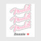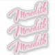 Meredith name in pretty pink decorative cursive script font lettering. Three copies.