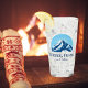 Beer glass from Méribel Meribel France with a gorgeous blue mountain with a sunny background and the option to add text.