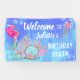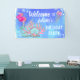 Customize this adorable mermaid themed banner for a girl's birthday party by changing the name on the sign. The illustration has vibrant colours in shades of pink and blue which is eye catching.