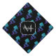 Mermaid aqua blue ombre Sparkles pattern Monogram Graduation Cap Topper