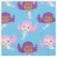 Adorable bright blue fabric patterned with cute colourful mermaids.