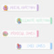 Personalized name labels - perfect back to school supplies for kids and students of any age. Cute mermaid design and pastel colour palette of pink purple green and blue. You can use up to 4 different names in handwritten style typography. If you want to change the font, colour or size, click to customize further and edit using the design tool.