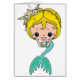 A cute mermaid dressed in blue with yellow hair is featured on a variety of t-shirts for kids and women, and customized products for girls. If you love the beach and mermaids, you'll love these mermaid gift ideas.