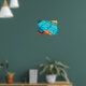 There’s a mermaid in the swimming pool, along with a few other sea creatures in this Poster. The original photograph by ZoeSPEAK is an overhead view of an aqua blue pool edged with marine blue and terracotta tile, and a curvy steel railing. The afternoon sunlight throws shadows on the sparkling water. The mermaid is happy.