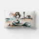 Mermaid Lighthouse Coastal Watercolor Scene Lumbar Pillow