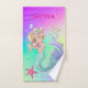 Un mignon ensemble de serviettes de toilette de nom personnel avec des sirènes et des créatures sous-marines, Changez le nom de votre propre serviette de bain personnelle.