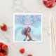 Personalized napkins of a beautiful mermaid expecting mom on aqua sparkly background. Baby shower, gender reveal or pregnancy announcement party.
