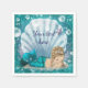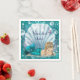Mermaid under the sea paper napkins with adorable blonde mermaid baby with pearls in a pretty clam shell on a beautiful teal blue under the sea background. You can add text in the font style and colour of your choice to personalize for your event. This is a printed design with no real jewels, glitter, etc.