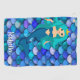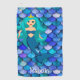 Ocean blue and nautical theme. Blue and purple mermaid scale pattern. With a pretty mermaid princess with a tiara. Template for a name, white letters.