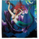 A red haired mermaid is swimming in the ocean with a purple water dragon.