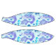 Beautiful, Weird, Purple and Turquoise Fairy Ocean Creature, this Mermaid is Swimmingm and looks like playing, surrounded by Starfishes, sea shells, seaweed, Fishes, and holding a little Seahorse on her hand; all the elements are assembled to compose a Fantasy Pattern. Vector Illustration Copyright BluedarkArt.