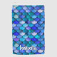 Ocean blue and nautical theme. Blue, turquoise and purple mermaid scale pattern. Template for a name, white letters.