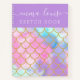 Channel your inner mermaid whenever you sit down to draw with this fabulous watercolor pastel ombre mermaid design with gold glitter scales. Add your name so no one tries to steal your sketch book!