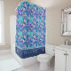 Add a special touch to your mermaid-themed bathroom with this adorable under the sea mermaid tail pattern monogrammed bath tub shower curtain. This cute curtain has a pattern of sparkly blue and purple mermaid tail scales and seashells. Add your custom first name or other text for a personalized touch! This shower curtain makes a great birthday, Christmas, or other holiday gift for young girls!