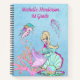 This is an adorable mermaid, seahorse and jellyfish notebook for a girl. This would be perfect as a back-to-school gift which any girl would love to have. This notebook can be personalized by changing the name and grade on it. The image is colourful with the main colours being turquoise, pink and purple.