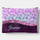 Mermaid skin pink silver faux glitter monogram Personalized Accessory Pouch. It is designed with elegant girly silver and iridescent faux glitter in unicorn, rainbow, pink, turquoise and purple.