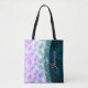 Pretty chic and elegant girly mermaid skin iridescent faux glitter in teal turquoise purple silver tote bag. Beautiful, modern and cool bag for the trend-savvy and art-loving hip trendsetter. Easily personalize this trendy chic tote bag design with your name. This stylish design would be great for girls who enjoy classy sparkly designs. Show off your personal style, look fashionable, trendy and feel stylish with a unique design that you can also customize it over another product of your choice. Whether for valentines day, Christmas or as a gift in general it makes a great gift idea for any woman who loves modern sparkly elegance. PLEASE NOTE: These are flat printed graphics - no real glitter, jewels or raised parts.
